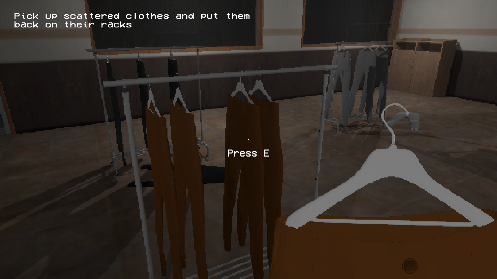 It’s closing time at the local clothing store, and you’re the last one on duty. You must do your tasks: clean the store, tidy the racks, and keep an eye on the dressing rooms... Something is going on in there...